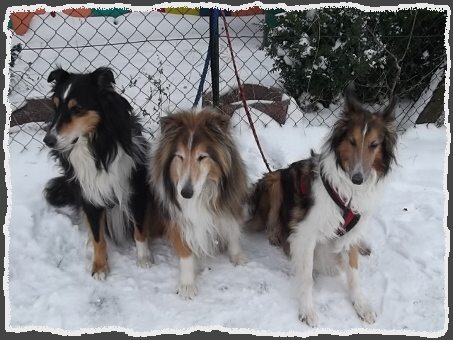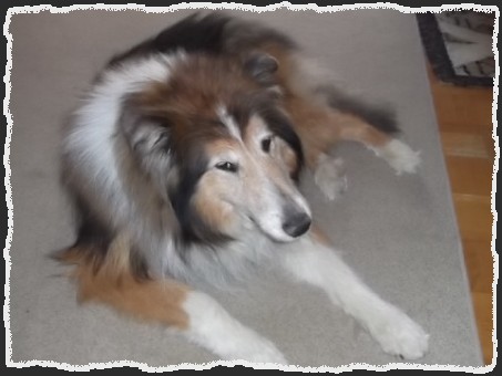 Sunny, geboren am 02.04.2003, hat uns leider am 06.06.2016 nach schwerer Krankheit verlassen. Am 01.07.2012 wurde uns Sunny von Colliefreunden nach Staffelfahrt am Autobahnrasthof Hof übergeben. Schon beim ersten kurzen Gassigang schlossen wir Freundschaft. Auch Bianca, unsere blinde Colliemixhündin, wurde sofort akzeptiert. Im neuen Zuhause angekommen wurde jeder Schritt von ihr mit großen Augen hinterfragt. Futter oder Ruheplätzchen wurden erst nach Aufforderung „na komm usw.“ angenommen. Diese Unsicherheit legte sich zum Glück. Auch ihr Aussehen verbesserte sich nach Krallen schneiden und intensiver Fellpflege. Auch Merlin wurde in unserem Seniorenpflegeheim im Aug. 2012 von ihr aufgenommen. Leider verstarb er im Juli 2014. Merlins Nachfolgern, Costas und auch Filou, machte sie mit einem Seitenblick und blitzendem Eckzahn klar, wer hier der Chef ist. Costas sowie Filou konnten wegen Unverträglichkeit mit Bianca nicht bleiben. Erst mit Fiete kehrte wieder Ruhe im Rudel ein. Selbst mit Biancas Nachfolger Benny herrschte Zufriedenheit und Ruhe. Ende 2015 wurde Sunny krank und erholte sich leider nicht mehr. So mussten wir sie, mit großem Bedauern, zu ihren Freunden Merlin, Bianca und Benny gehen lassen.