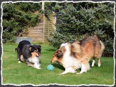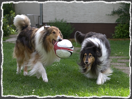 Dann kam aber endlich die Zeit, in der es mit Deiner Beinverletzung langsam bergauf ging. Während unserer Besuche haben wir immer wieder mit Margit über Deine Zukunft beraten, mit dem Ergebnis, dass Du für eine Woche mit zu uns kommen solltest. Aus dieser Woche sind dann 10 Jahre geworden. Auch mit deiner Beinverletzung ging es immer mehr bergauf. Du konntest jetzt mit Dexter spielen, mit dem Du, nach einigen kleineren Querelen, mittlerweile Freundschaft geschlossen hattest. Auch gemeinsam mit Dexter hinter dem Ball herrennen war problemlos möglich. Es war eine wunderschöne Zeit.