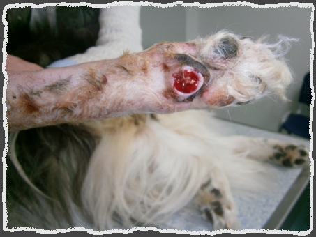 Als sie endlich bei uns ankam, war das Entsetzen unbeschreiblich. Es war uns sofort klar, dass wir alles unternehmen würden, um ihr Leiden zu beenden, koste es was es wolle! Es folgte eine lange Zeit mit einigen nicht einfachen und bestimmt schmerzhaften Therapien und Operationen. Aber dieses sanfte Wesen Luna ertrug wirklich alles, als ob sie verstünde, dass sie eines Tages ein ganz normales Hundeleben führen würde.