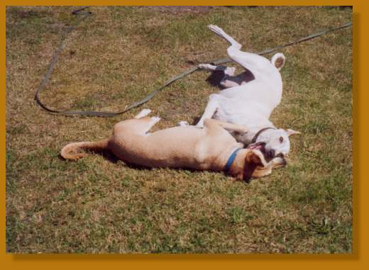 Also habe ich die ersten zwei Wochen 3 x täglich was zu futtern bekommen! Das war schon klasse. Hab` am Anfang auch alles so schnell `runtergeschlungen, dass ich mich beim Fressen dauernd verschluckt habe. Als ich aber gemerkt hab`, dass mir keiner was wegnimmt (auch meine allerliebste Laika nicht) und ich immer satt wurde, fing ich dann an, ganz genüsslich schön langsam zu fressen (inzwischen sogar direkt neben Laika im Duett). Mein Futter und die ganzen Leckereien, die mir Herrchen immer heimlich zugesteckt hat... mal einen Wurstzipfel hier, mal einen Ochsenziemer da haben natürlich auch zu meinem Wohlbefinden und einem besseren Aussehen beigetragen. Und Pansen, Maulfleisch oder Blättermagen gab`s auch hin und wieder...... soooooo lecker sag ich Euch !!!