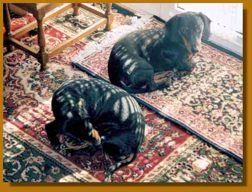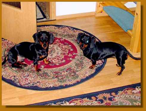 Durch unsere Tanja ist in unserem Haushalt alles dackelgerecht eingerichtet. Selbst die Beine vom Bett haben wir abgesägt und eine Schräge angebracht, damit die Hunde ohne zu springen ins Bett kommen können. Dort fühlt man sich dann auch sehr wohl und reagiert schon einmal mit Knurren, wenn man dann frühmorgens so gegen 9 Uhr) schon aufstehen soll. Wir sind sehr glücklich mit unseren Hunden!
