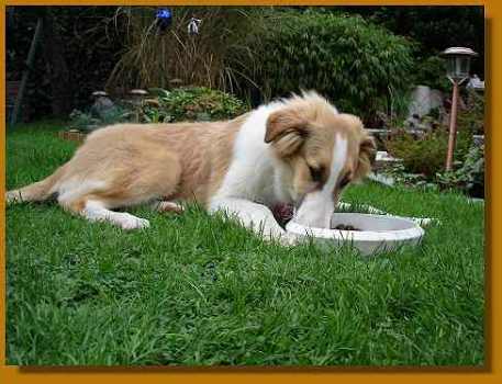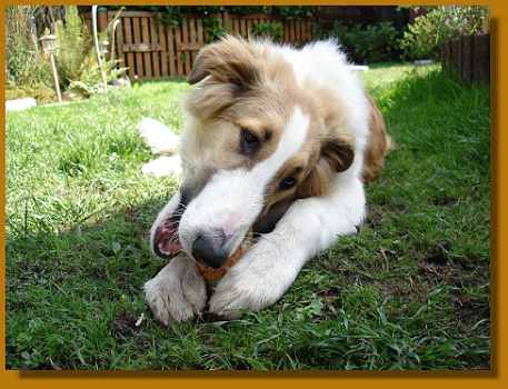 Mir geht es hier prächtig, ich bin nur noch fünf Zentimeter kleiner als mein Hundekumpel Tobi, wiege 18,2 kg und habe im Moment ziemlich wenig Zähne. Von meinem Babyfell ist auch nicht mehr viel zu sehen.