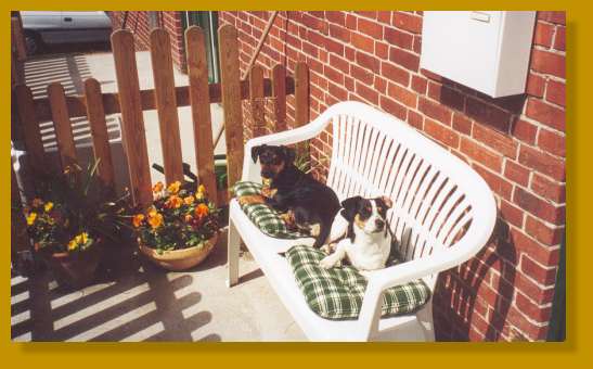 wir haben die beiden Süßen nun fast ein Jahr und können uns ein Leben ohne sie gar nicht mehr vorstellen. Beide sind mittlerweile kastriert, aber natürlich kein bisschen ruhiger. Am liebsten liegen sie auf ihrer" Bank vor der Haustür in der Sonne und beobachten den Bürgersteig. Auch das Laufen am Fahrrad macht beiden Hunden riesig viel Spaß, wobei Stefan und ich danach total müde sind, Wutz und Urmel aber gar nicht....Ansonsten toben sie gern über die Pferdekoppel.